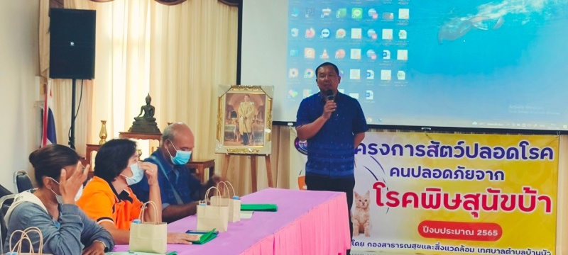 22 กรกฎาคม 2565 เวลา 8.30น. นายกเทศมนตรีตำบลบ้านบัว มอบหมายให้นายพงษ์ศิวกร บุตรศรีภักดีกุล ปลัดเทศบาลตำบลบ้านบัว เป็นประธานในพิธีเปิดการฝึกอบรมโครงการสัตว์ปลอดโรคคนปลอดภัย จากโรคพิษสุนัขบ้า ประจำปี 2565 แก่ปศุสัตว์อาสาพื้นที่ตำบลบ้านบัว เพื่อป้องกันและควบคุมโรคพิษสุนัขบ้าในพื้นที่ตำบลบ้านบัว |