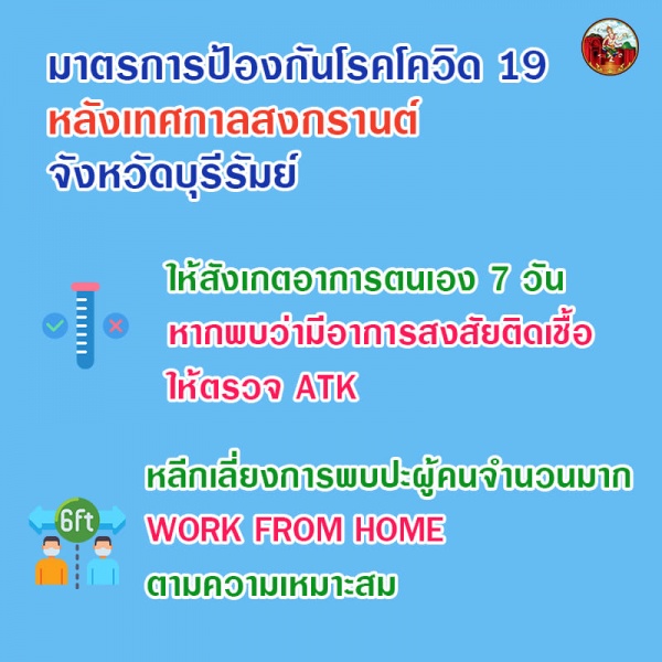 มาตรการป้องกันไวรัสโคโรนา 2019 หลังเทศกาลสงกรานต์ (13-17เมษายน 2565) |