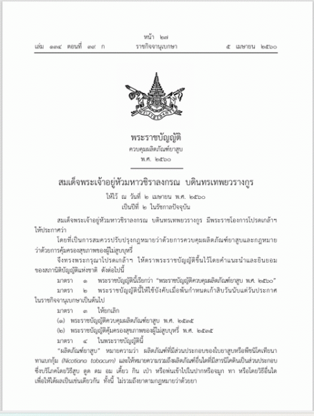 พรบ.ควบคุมผลิตภัณฑ์ยาสูบ พ.ศ. 2560 |