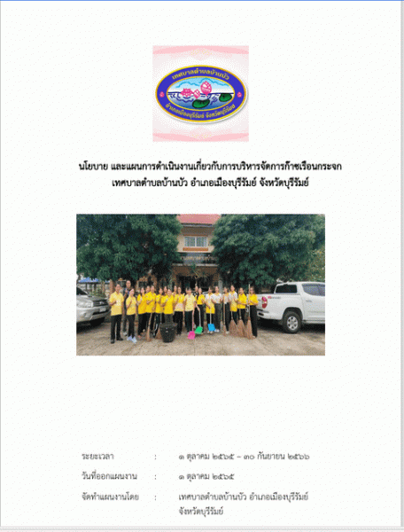 **27 พฤษภาคม 2566 เวลา 10.00 น.นายกิตติพงษ์ รัตนศศิวิมล นายกเทศมนตรีตำบลบ้านบัว มอบหมายให้ปลัดเทศบาลฯ พร้อมด้วยข้าราชการ พนักงานเทศบาลฯ ร่วมกิจกรรม Big cleaning day ทำความสะอาดบริเวณภายใน-ภายนอก โดยรอบเทศบาลตำบลบ้านบัว ตำบลบ้านบัว อำเภอเมือง จังหวัดบุรีรัมย์ จังหวัดบุรีรัมย์ |