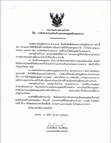 ประกาศเทศบาลตำบลบ้านบัว