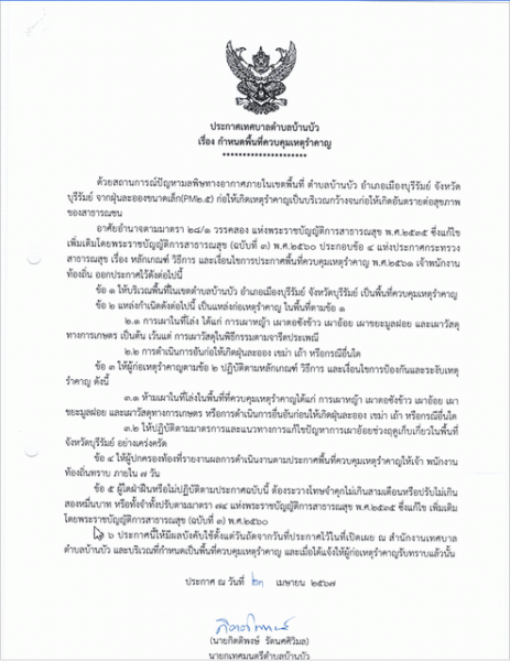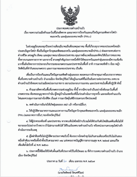 เรื่อง ขอความร่วมมือห้ามเผาในที่โล่งโดยเด็ดขาด และมาตรการป้องกันและแก้ไขปัญหามลพิษจากไฟป่า หมอกควัน และฝุ่นละอองขนาดเล็ก (PM2.5) |