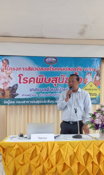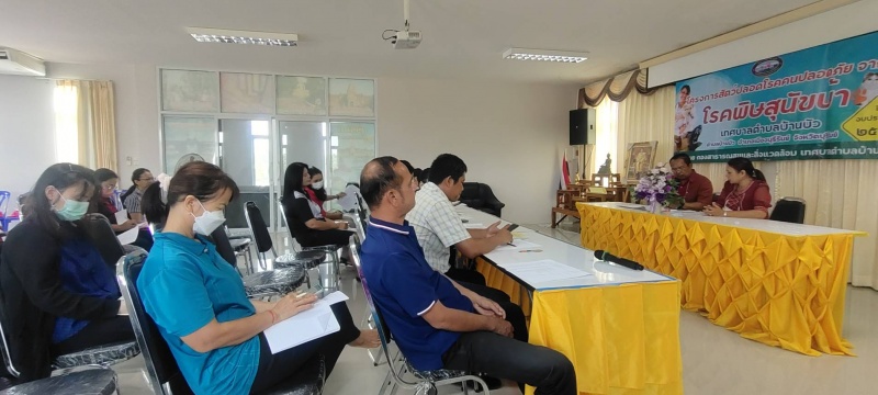 26 เมษายน 2566 เวลา 9.00 น.นายกเทศมนตรีตำบลบ้านบัว มอบหมายให้นายพงษ์ศิวกร บุตรศรีภักดีกุล ปลัดเทศบาลตำบลบ้านบัว เป็นประธานในพิธีเปิดการประชุมโครงการสัตว์ปลอดโรค คนปลอดภัย จากโรคพิษสุนัขบ้า ประจำปี 2566 แก่ กำนัน ผู้ใหญ่บ้าน และปศุสัตว์ระดับตำบลบ้านบัว วิทยากรผู้บรรยายให้ความรู้ ได้แก่ ผอ.รพ.สต.บ้านบัว และคณะวิทยากรจากสนง.ปศุสัตว์อำเภอเมืองบุรีรัมย์ กลุ่มเป้าหมายผู้เข้าร่วมประชุมจำนวน 60 คนโดยมีวัตถุประสงค์ ดังนี้ 1.เพื่อเป็นการป้องกันและควบคุมโรคพิษสุนัขบ้าในพื้นที่ 2.สร้างความร่วมมือและบูรณาการระหว่างองค์กรและภาคประชาชน 2.สร้างภูมิคุ้มกันโรคให้แก่สัตว์และลดอัตราความเสี่ยงของประชาชนในการป้องกันและควบคุมไม่ให้เกิดโรคพิษสุนัขบ้าในเขตตำบลบ้านบัว ณ ห้องประชุมอาคารอเนกประสงค์(ชั้น2) เทศบาลตำบลบ้านบัว |